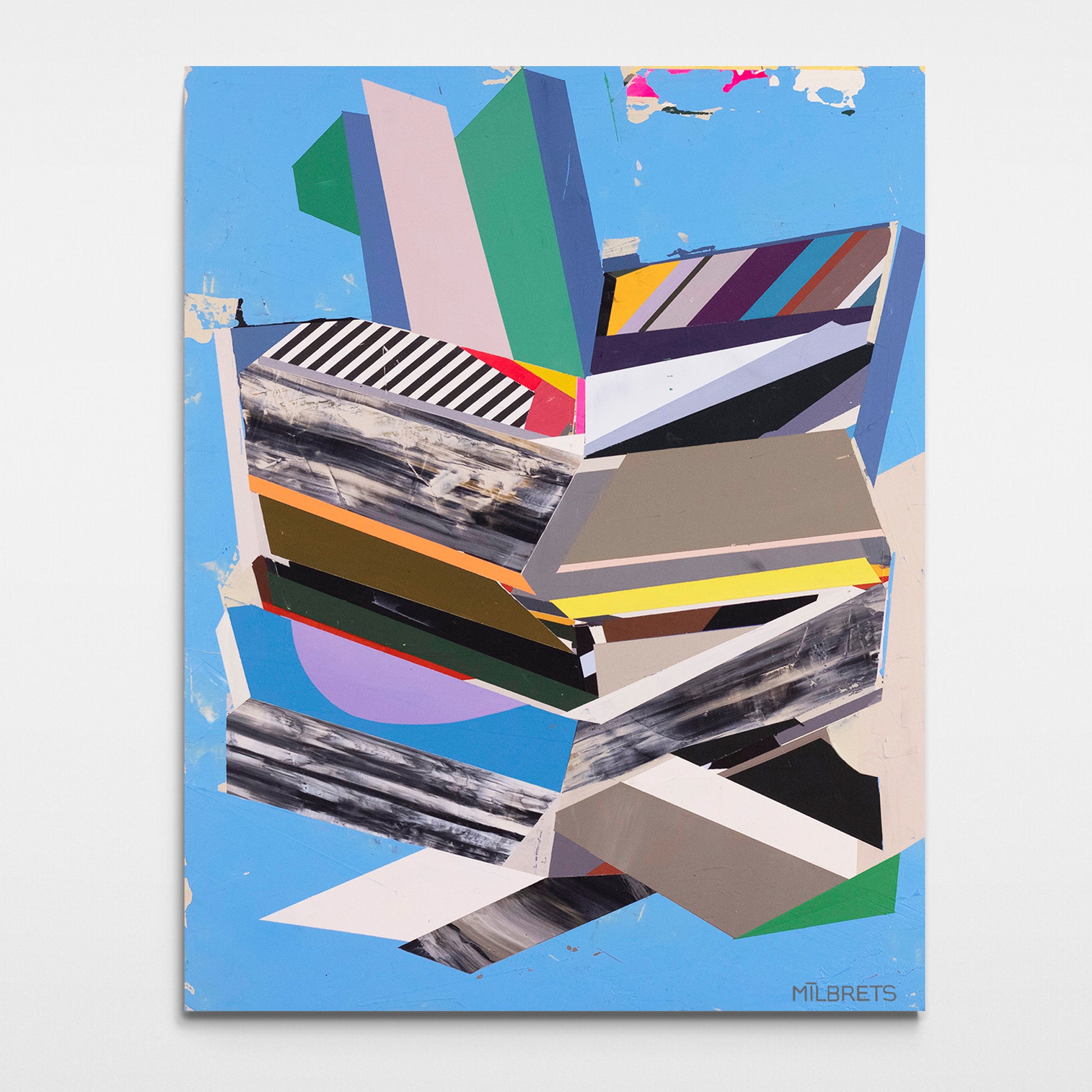 This abstract painting explores the theme of "disconnected signal" through two distinct areas: one filled with sharp, chaotic lines and intense colors, symbolizing signals, the other, calmer and more fluid, representing the longing for connection. The contrast between these two zones highlights the emotional tension that occur when communication is severed.